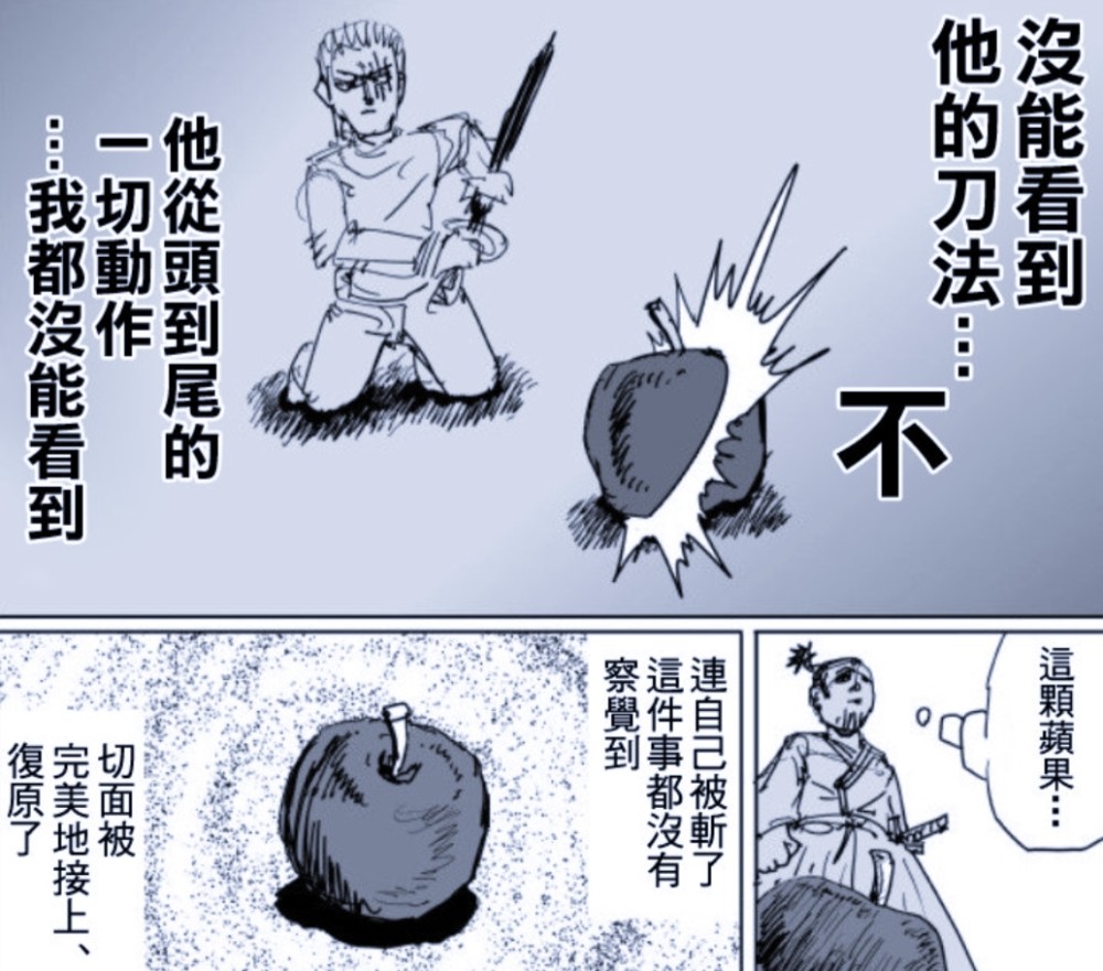 原作漫画中,原子武士就向King挑战了,毕竟在怪协的最后战斗中,King也是有非常活跃的表现,但他的战斗还是依旧是个谜。原子武士可是在黑精手下吃了大亏,可以说参加战斗的所有S级英雄在一定程度上吃瘪,就只有King一人像个没事人。于是原子武士向King发起挑战,结果又成就King的一个传说,明明什么都没干(没拔出刀),原子武士却吓得瑟瑟发抖,不夸张的说,都快把King当成神了。