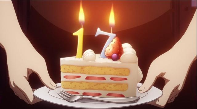 随后辉夜给会长买了一个大大的蛋糕,结果在准备送出的时候才发现不太合适,不应该送这么大的蛋糕,一时间手足无措,内心便开始纠结,开始打起了退堂鼓,好在最好还是选择了继续,自己便切了小块作为生日蛋糕,同时还送给了会长一把有着自己题字的一把扇子。在给会长过生日的过程中的辉夜可爱炸了,之前的傲娇全部消失。会长也发自心底的高兴。