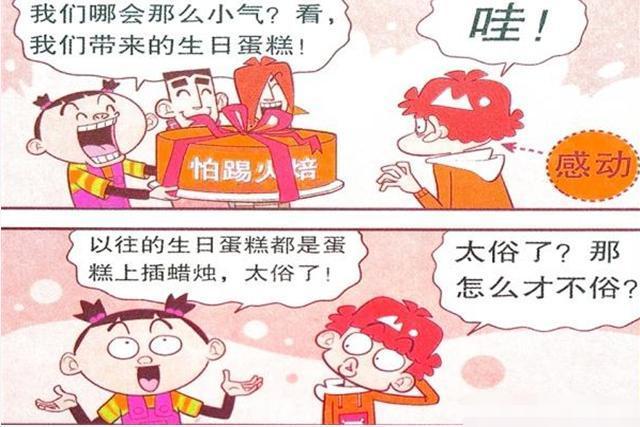 大脸妹和同学们送“火焙蛋糕”给阿衰过生日,这可是把阿衰感动到不行了,真的没有想到他们三个人居然还记得自己的生日,大脸妹跟阿衰就说往日这个生日蛋糕都是插蜡烛,感觉有点太俗气了,阿衰一脸疑问的看着大脸妹,想她为什么会这么说呢?