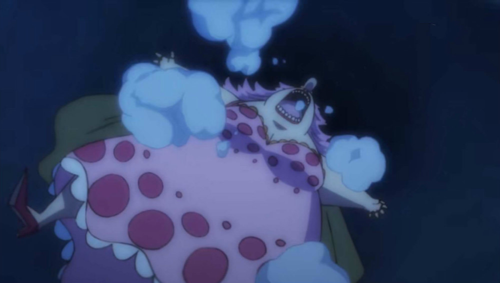 因为在大妈海贼团登陆和之国,遭到百兽海贼团攻击时,大妈的海贼船被百兽海贼团的大看板,动物系古代种“龙龙果实”之无齿翼龙形态能力者“炎灾·烬”,给从和之国入口的瀑布上面踢了下去。