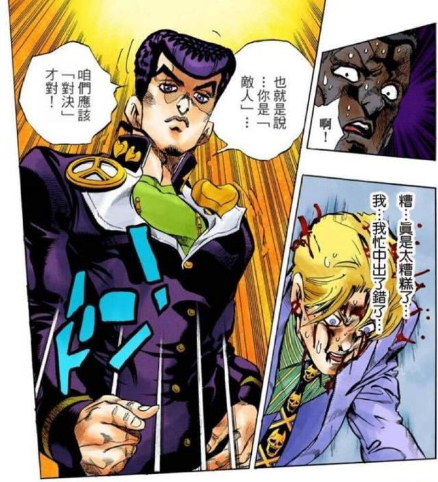 正因如此,仗助必须尽量避免和吉良吉影的双手接触,以免被杀手皇后的能力变成炸弹。只要让吉良吉影的断手寻找本体,就算吉良的手复原了,他也碰不到仗助,毕竟论近战肉搏能力,杀手皇后可是远不如疯狂钻石的,这点从最终战就能看出来了。