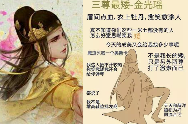 一看到这几个醒目的大字真是又想笑又心疼瑶妹啊,毕竟三尊最矮这个永远是三尊中最矮的,就算是高帽子也拯救不了他啊。不过咱瑶妹矮是有原因的,据说不是瑶妹长得矮,而是另外两尊打了激素?真不知道你们这些一米七都没有的人怎么好意思嘲笑咱瑶妹矮呢?哈哈。瑶妹还抱怨啦,魔道还欠着他一个奥斯卡呢。