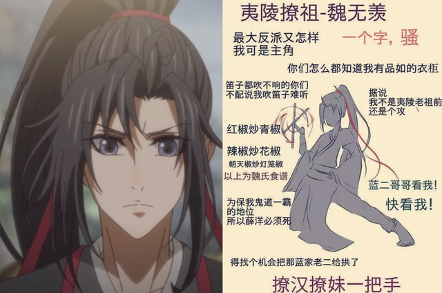 据说虽然是魔道最大反派,但是因为主角光环成功逆袭,总结下来就是一个字,那就是马蚤。他的最爱就是辣椒炒花椒再加上朝天椒灯笼椒,红椒炒青椒,完美。为了鬼道一哥的地位,薛洋只能对不起了,为了自己的幸福,蓝叔父只能对不起了。看,我们羡羡多坏。