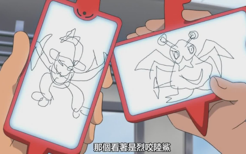 在新无印22集开头,我们看到小智与小豪两人在比赛“烈咬陆鲨”的画画,看谁画得比较像?结果当小编看到这两人的画画作品,彻底被震惊到了,这两人的画风简直了,根本就难分高下。