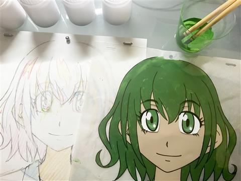 赛璐璐上色和如今的数字动画制作流程中的上色不同,是直接采用颜料在透明的赛璐璐片上进行上色的。日本人用的是一种叫“厚塗り”的手法进行上色的,注意,这里的厚塗り,和如今插画作画中的“厚涂”还不太一样,并不是风格上的厚涂,而是真的做得很厚,大概能有1mm的厚度,然后等颜料风干,实际上赛璐璐片看上去是上面是结了一层厚厚的硬质的色彩的,之后如果上色出错,修正就很麻烦了。