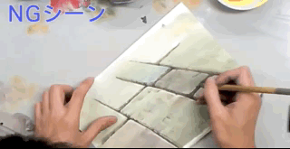数字时代,颜色可以轻而易举的撤销或者修改,不影响画面,但是颜料上色后要修正,大动干戈的话会影响紧张的电视动画制作进程,所以一般性都只做小范围的修正,如上图这样,大范围的修正用新的一层赛璐璐盖上去就行,而还有一种修正,就是用竹条把已经上色的颜料扣下来,然后重新上色。