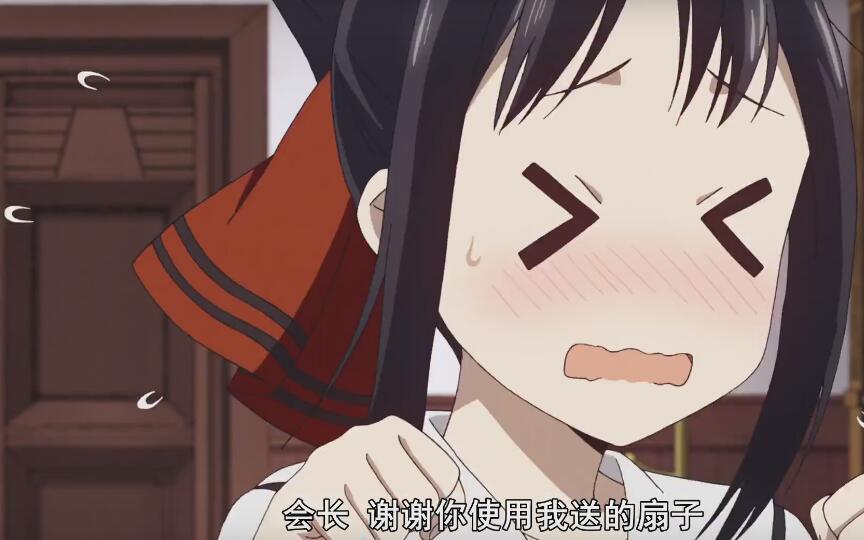 本节刚开始,会长向藤原书记展示了辉夜所赠送的折扇,目的是想借书记的手逼迫辉夜承认她喜欢自己的事实!