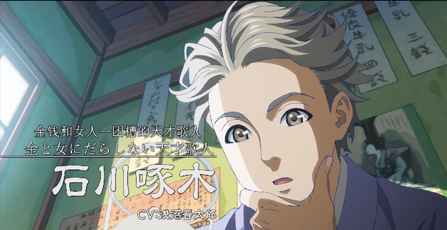 石川啄木,在日本历史中是真实存在的一名诗人,开创了日本短歌新时代,为日本的文学发展作出了很大贡献。但是一生贫病交加,现实中也和动画一样,英年早逝,终年26岁,是一位令人惋惜的天才诗人。