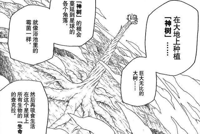 大筒木的根本目的吞噬星球的生命,在大地之上种植神树,神树的根就会蔓延到世界的各个角落,然后再吸食生活在这个星球上所有生物的生命的查克拉,最终长成巨大无比的树,并结出巨大的查克拉果实。