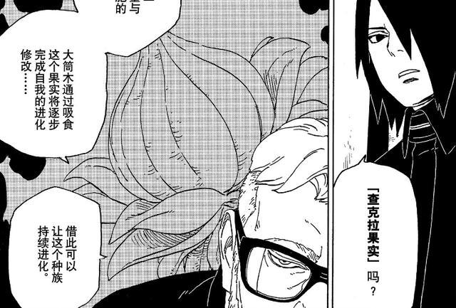 查克拉果实是巨大的能量与遗传因子细胞的结合体,大筒木正是通过吞噬查克拉果实从而实现自我进化,借此也可以让整个大筒木种族得以进化。可以说查克拉果实结出的那一刻,这个星球就没有一个活物。而得到查克拉果实就是壳组织全部内阵成员的意志,这一点在慈弦的嘴里亲自得到了证实。