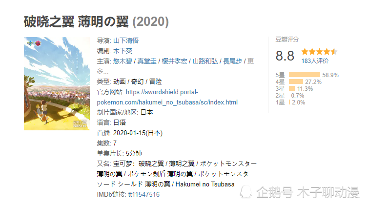 虽然每集只有5分钟,而且还是月更,《破晓之翼》的热度却一点也不低于《宝可梦新无印》。在豆瓣上《破晓之翼》取得了“8.8”的高分,甚至高于“新无印”动画的“7.6分”,由此可见,《破晓之翼》的观众喜爱度还是蛮高的。