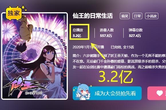 有一件事情大家可能还不知道,虽然《仙王的日常生活》这部国产动画的评价并不是很好,但是它的播放量可是达到了一个惊人的数字,单单B站的播放量就已经达到了3.2亿。要知道在B站能够达到如此高的播放量是一件很困难的事情,这足以证明不管仙王有没有抄袭日漫,至少它的制作和内容还是吸引到了不少网友们的喜爱。