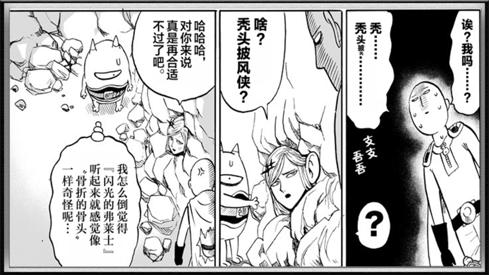 琦玉哪里好意思说出自己是“秃头披风侠”这样的称号,支支吾吾半天不想开口,闪光却吐槽说出了琦玉的真实称号,还说琦玉这样的称号其实是很合适的称号。