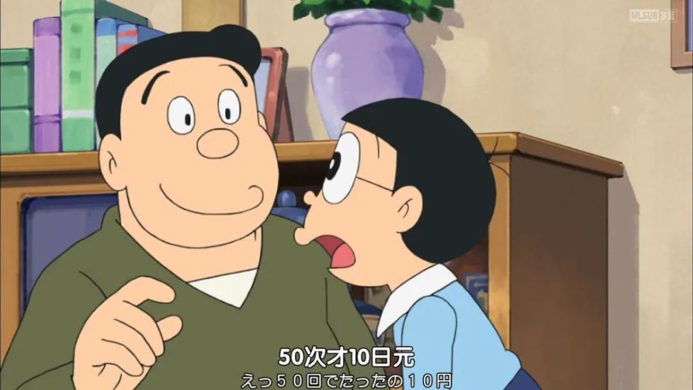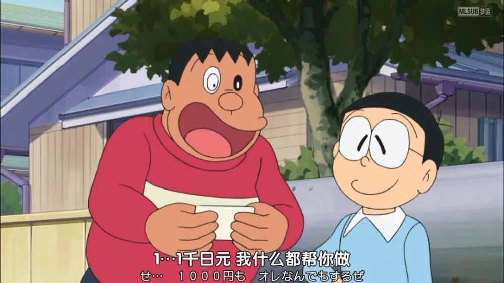 接下来就是小夫和大雄比拼财力的时候了,胖虎会站队谁呢?直到大雄给出了5000日元,小夫被揍了一顿。