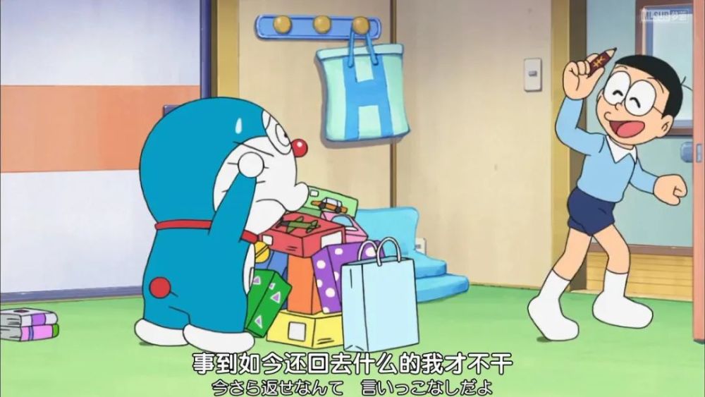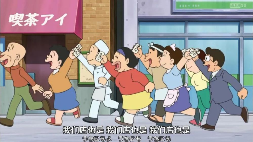 哆啦A梦没想到大雄会这么乱来,让大雄赶快把东西全部都还回去。结果时间迟了,书店老板,商业街的各个老板都来找大雄,让他去送货。