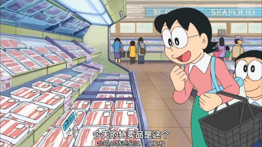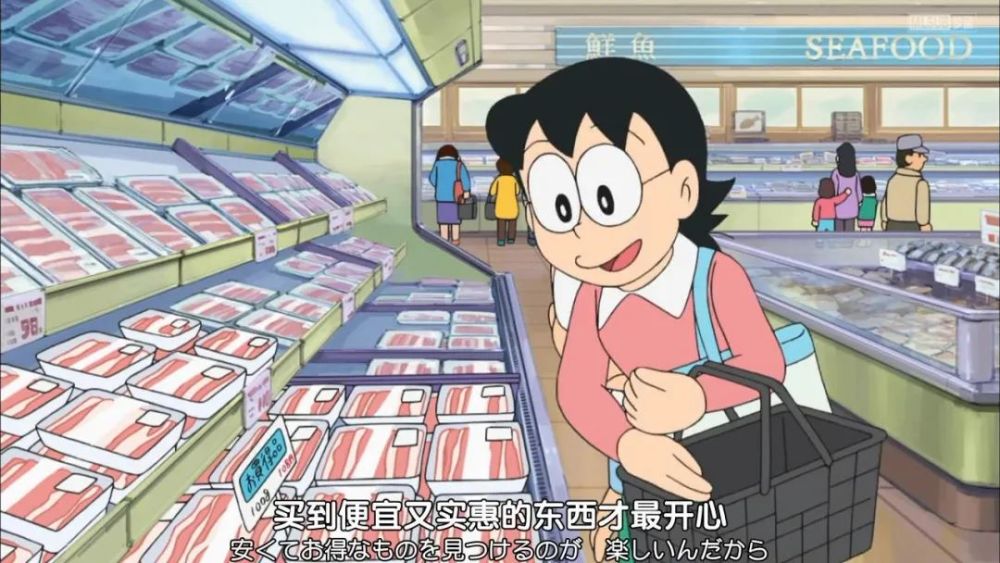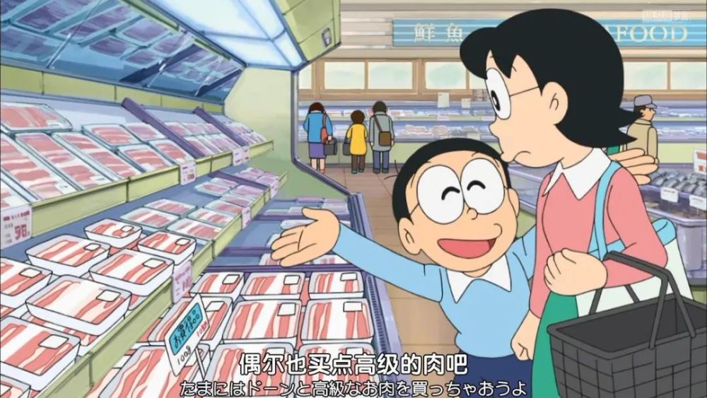 大雄想让母亲偶尔也买点高级肉,然而母亲表示不能这么奢侈。