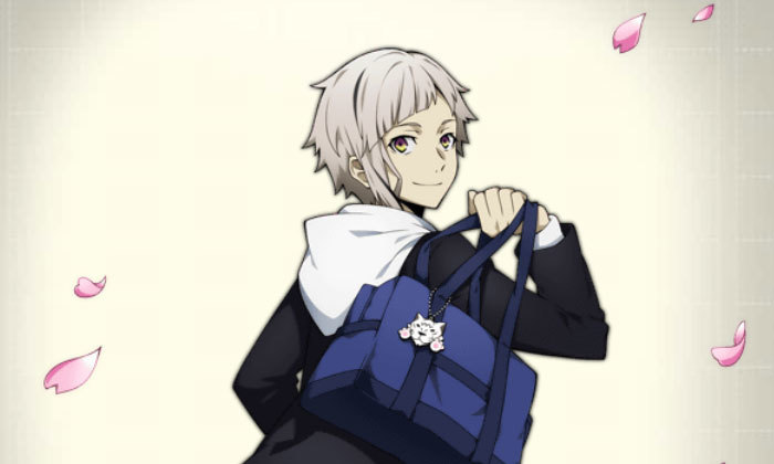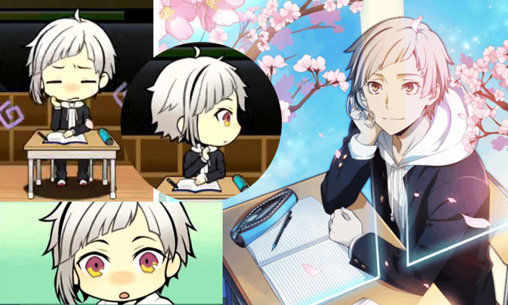 虽然上学的时候遇到了迷之男子,但新校园、新课程还是很让人期待的。中岛敦元气满满地开启了专心致志听课模式,也许是春困的原因,听着听着就有点打瞌睡了。无意四处张望一下的中岛敦,一下子被窗外的樱花所吸引。樱花就像有魔力一般,轻轻飘来一花瓣,就一下子就把中岛敦的困意全部卷走。