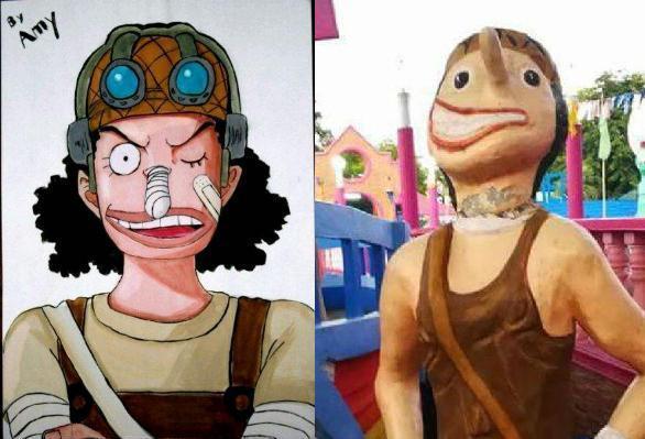 乌索普原本在海贼王动漫里的造型就够丑的了,没想到,菲律宾山寨海贼王乐园里的乌索普,更是将丑发挥到了极致。