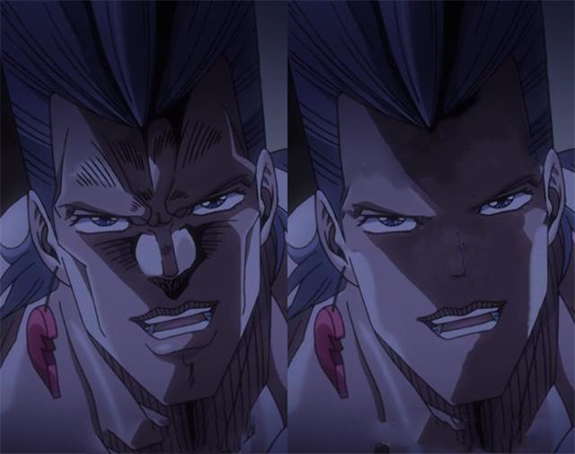 承太郎光是从外表上来看就给人一种很强大的感觉,反派迪奥也因为承太郎的样子不敢轻易接近他,而后当承太郎的“荒木线”去掉之后,你会发现承太郎失去了无敌,这个样子的看起来太青涩了。