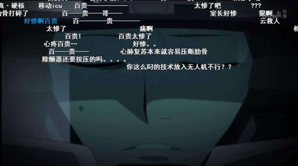 百贵穿着沉重的防护服,磕着各种大剂量的活性剂,抵抗无差别的精神干涉,前去寻找游荡的飞鸟井木记。动画对百贵寻找飞鸟井木记这一段剧情做了具体的细节描写。“心肺停止”、“肋骨插入肺部”等等具体字眼,让观众似乎感觉到了切身的疼痛。