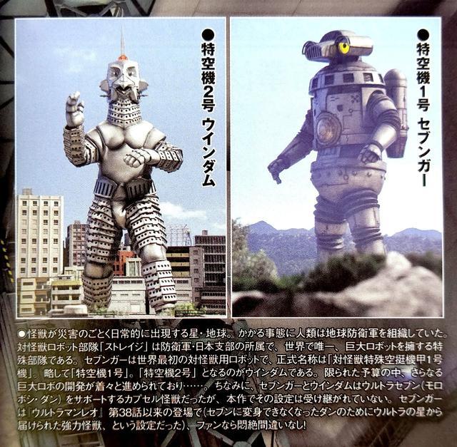 本次预定登场的两位胶囊怪兽,分别是赛文加和乌英达姆,这次设定是人类组织,对怪兽地球防卫队专属部队操控的强力兵器,是世界上唯一拥有巨大机器人的特殊部队,注意这里明确表示设定变了,不继承赛文的世界观,这两位不是赛文弄来的胶囊怪兽。