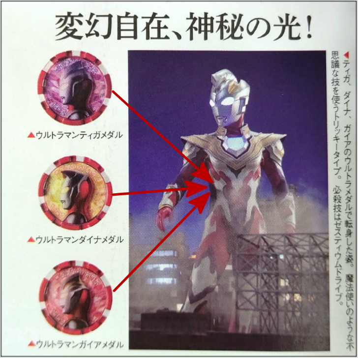 同样伽马未来也是借用前辈的力量变身,所以这个形态是主打“超能力”攻击。实际上就是利用光线攻击对手,这三个奥特曼前辈是“平成三杰”,他们都很擅长使用光线。所以泽塔伽马未来也是能够运用多种光线技能,擅长变化多端、以巧取胜的战斗方式。由于必杀技是光线攻击,估计我们可以从他身上看出迪迦的视感。