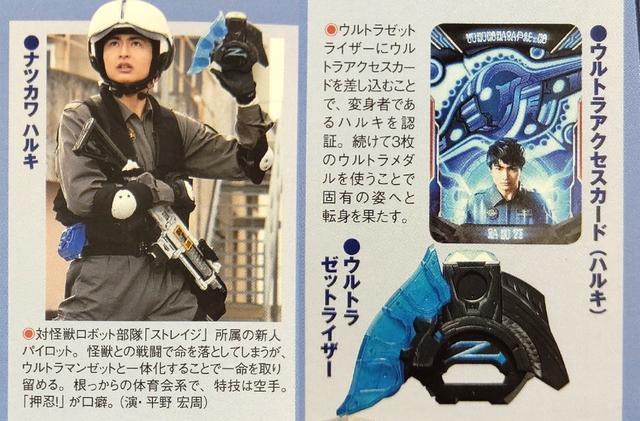 然后是这次的男主角,设定是对怪兽防卫部队加入的新人队员,原本在和怪兽的对抗中失去了性命,结果被追击怪兽来到地球的泽塔注意到,和泽塔一体化后成功保住了性命,其是体育系的热血青年,擅长空手道,口头禅是:押忍!