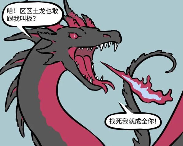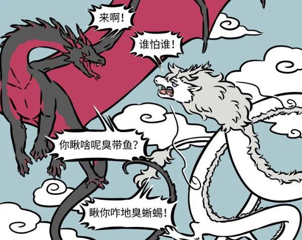 不过,本以为这两条龙会来一次空中斗法,再不济也是互相替身肉搏啊,谁知道这二位居然开启了文斗模式。何为文斗呢,也就是互喷啊,经常玩moba游戏的朋友对这个词肯定不陌生,特别是祖安区的朋友(误)。有时候是遇到坑比队友,有时候是遇到没素质的对手,嗨还玩什么游戏,文斗之!