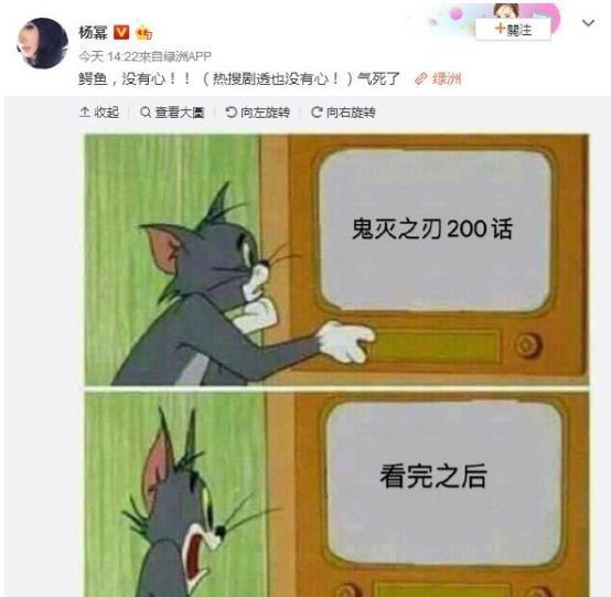 前不久因为著名演员杨幂在微博上发布追番感言,让《鬼灭之刃》冲上了热搜。而“鳄鱼没用心”也一时间成了网络热词。