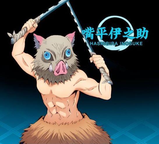 抱着野猪头套的祢豆子虽然在画面的角落里,但是凭着超高人气超萌表情依旧十分超抢镜。