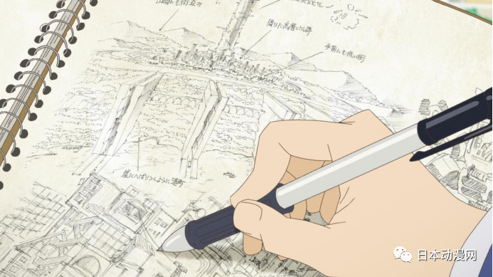 动画是多人的艺术,现实中仅凭三个高中生是无法做到动画里表现的那个水平。因此,《映像研》就像是梦想的一个放大版,它让梦想具象化,让设定的碎片成为真正的作品,走进幻象中的画里仿佛身临其境,在自己的王国里冒险。《映像研》中浅草每次脑洞大开时,都用手绘原画的方式去表现,有种梦想跃然纸上的浪漫。