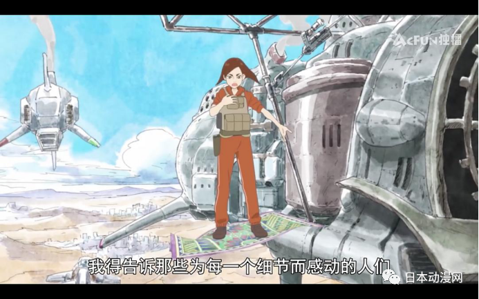 就仿佛用笔创造了一个世界。每个机械的转动方式,水流的方向,浅草是继承了宫崎骏的设定狂魔,片中也有不少关于宫崎骏的致敬。比如第一话中浅草设定的巨大飞行器,是致敬了宫崎骏的作品《天空之城》。一开始漫研社播放的片段,是致敬了宫崎骏的《未来少年柯南》。浅草戴着白胡子穿着工装围裙的造型,也对应了宫崎骏老爷子深入人心的经典形象。