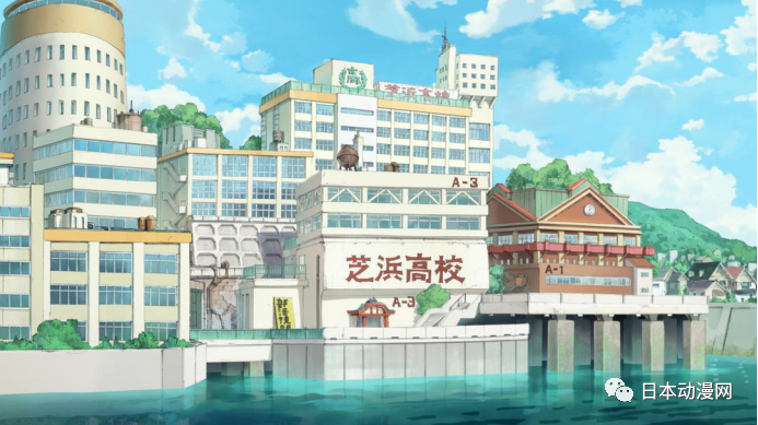 最后,映像研的场景地非常引人注目,小镇美丽又带点传奇色彩。与山色相连接的垂直城市,轨道从楼中穿过,崎岖的地形,逼仄的小路,废弃的建筑,破旧冷清的地下街,潺潺流水上巨大的水车,都有种“赛博朋克”的味道。甚至还有人猜测原型就是中国的重庆…在这里,泡完澡的雨夜,坐在旅馆里吃刚刚钓上来的小龙虾;周末骑单车去采音,登上了废弃的大钟楼又有了新的脑洞和幻想;地下街里冷清但是却好吃的水果担担面;校园文化祭为了躲避学生会,与机研社社长在学校里大闹一通,社长厨力大爆发…一切的一切,都充满了不可思议的青春,肆意又美好的日常。