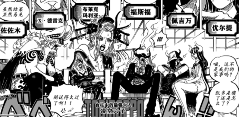 最新一话的海贼王中终于让我们看到了凌空六子的全部面貌,在这之前我们只知道德雷克和佩吉万两人,在六个人当中有两个是女性角色,分别是佩吉万的姐姐乌尔提和疑似巨人族的黑玛利亚,剩下的两个人分别是剑士和鱼人一族,看到这里我们就不难发现,好像在任何地方都能看见剑士和鱼人的身影,看来作者比较钟意这两种角色。