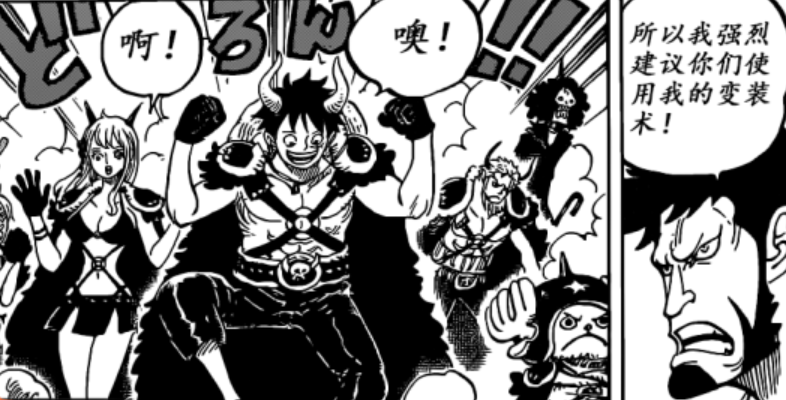 导语:新一话海贼王漫画中凌空六子都出现了,但很引人注目的是六子中有一位女巨人,还有一位鱼人大佬,恐怕他的实力不容小看。草帽团也开始伪装起来了,这服装也蛮好看
