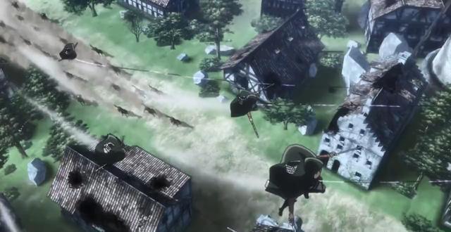 在前进了一小段距离后,兵长便收回绳钩,再瞄准一定的角度,将绳钩射出去。那为什么在动漫中并没有看到兵长的这些操作呢?真相只有一个,那就是兵长的速度太快了,就仿佛用一帧一帧的图片制作动漫一样,很多很多的快速“不完整旋转”连在了一起,才有了兵长旋转流畅,并且看不到脱钩和射钩的情节。