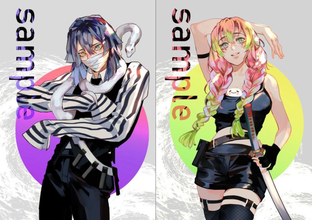 ▼看着下面这两位就想哭,估计很多真爱粉都和阿迷有同样的感觉吧?小芭内的西装打扮,和他在剧中的扮相没有太大的差别,但蜜璃的扮相就不是西装扮相了,现代感十足的短裤背心,很有蜜璃的风格。不知道有生之年能不能看到,有画师大大帮他们俩画出婚纱照呢?