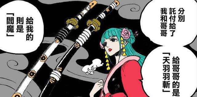 大家都知道尾田特别喜欢用一些神话中的事物应用到海贼王这部作品中,天羽羽斩和日本神话中的天丛云剑(草薙剑)以及布流剑(布都御魂)并称为“神代三剑”,天就是神的意思,而羽就是八岐大蛇的意思。神话故事中这把剑的第一位持有者伊邪那歧将剑传给了他儿子须佐之男,须佐之男用这把剑击退八岐大蛇,是不是一下就代入到和之国篇中的人物了?在剧情中这把刀正好就是光月御田传给了光月桃之助,所以这把天羽羽斩是不会换的,桃之助将用这把刀击败大蛇将军完成复仇。不过桃之助目前还没有能力和大蛇一战,桃之助击败大蛇有两种可能,一种是给予最后一击,第二种是变成正常的模样和大将对阵。