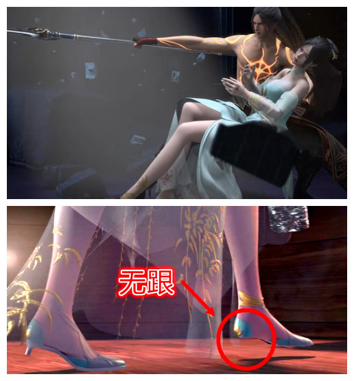 随着国漫的崛起,国产动画的质量越来越高,曾经只有在日漫才可以看到的二次元女神现如今在国漫也可以看到,而且国产动漫里的女神不仅建模细腻,就连外貌也很诱人,尤其是国漫的先驱者“玄机”,凡是玄机出品的国漫,绝对会出现女神级别的角色,当然除了玄机出品之外还有很多优秀的国产动漫,只不过虽然国漫女神的建模都很让人称赞不绝,但毕竟人无完人,所以大家如果观察得够仔细,也会发现其中的瑕疵,但影响都不大,今天小编给大家带来的就是国漫女神的“液体袜”虽好,但高跟鞋的穿帮镜头实在让人出戏,希望大家可以喜