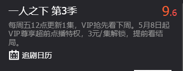 但,不知道有多少粉丝注意到,在《一人之下3》开播的同时,平台也公布了第三季的播放方式。从5月8日开始,第三季将开始超前点映模式,每3元可提前解锁一集。超前点播的集数为4集,也就是第三季的5-8集。