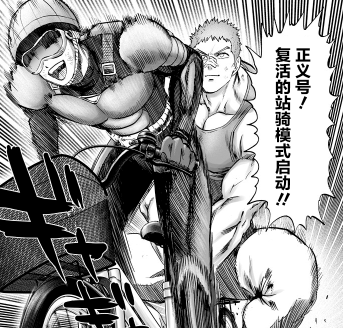 【背心尊者对无证骑士说:我想和你骑单车】英雄的确是不会输的,并不是说他们实力强大真的不会输,而是输了之后还能再次站起来。无证骑士也正打算要前往战场,此时背心尊者出现在他的身后,S级的背心尊者也是被饿狼击败的,再次站起来的他和金属球棒一样的目的。于是就和无证骑士骑着单车前往战场了。要是金属球棒等他们的话,背心尊者就可以唱杰伦的歌了,对无证骑士:我想和你骑单车,对金属球棒:我想和你干棒球!