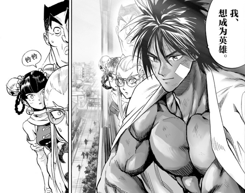 【习武之人的觉悟,想起豪杰的恐惧】另外一边就是在武术大会上被怪人打倒的武者们,情况如此恶劣,我们武人岂能够袖手旁观,也是打算前往战场,但是突然想起了怪人豪杰,心里的恐惧依然还在。此时水龙点破了局面,我们的实力不弱于那些英雄,但我们缺少了那种面对危险毫不犹豫的要救民与水火之中的精神。水龙恢复的很好,肌肉线条完美,并且发自内心的说出自己想成为英雄。不知道水龙被豪杰打掉的牙齿恢复了没有。