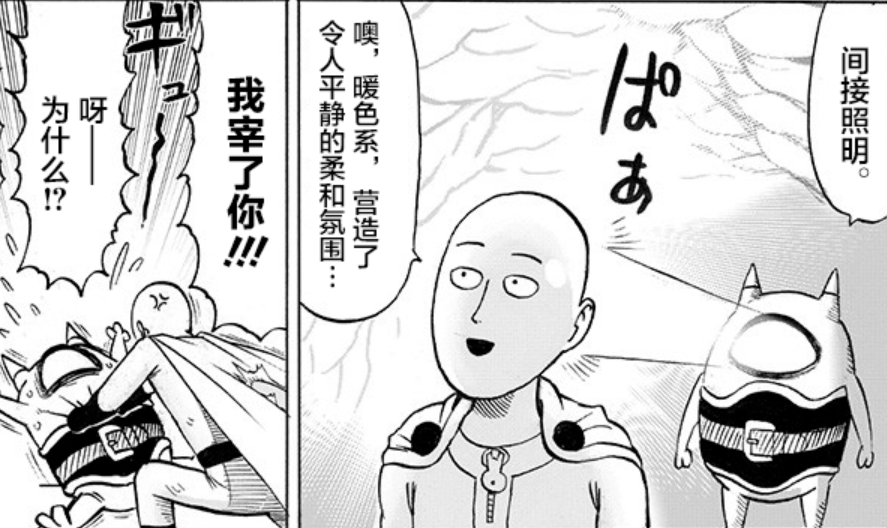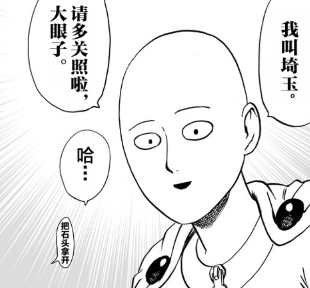 【作弄琦玉的怪人出现,神级?】紧接上一话龙卷和赛大蛇的战斗,琦玉和闪光弗莱士被波及到,降落的碎石将弗莱士压住了,只露了个头,此时被琦玉要挟的怪人大眼子想趁着黑暗用石头砸琦玉,被弗莱士吓到而停手。大眼子这个照明让琦玉和弗莱士表情堪称是又一名场面,而后琦玉还和大眼子交朋友,大眼子除了调侃琦玉秃头披风侠的称号之外,还用琦玉的光头发射出适中的光,能够这样对待琦玉而没有死的怪人,大眼子怕是第一个,于是有网友调侃,大眼子乃神级怪人,琦玉老师亲自让它多多关照。