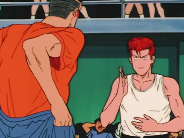 而那时候的樱木因为急攻心切,结果不小心滑了一下,导致把赤木的裤子给脱了,令到赤木变成了光腚,但如今基本找不到这个镜头了,被和谐了,也许是因为影响不好吧,所以被忽略了。