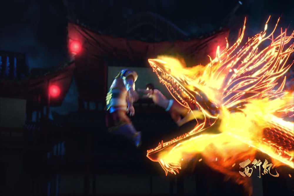 时间不长,他们便来到了流沙河,却在这里遇到了被持国天改变心智的沙悟净,当所有人都被沙悟净的困阵迷惑,沙悟净化成一个巨大的风沙巨人,打算消灭众人时,是白狼站了出了,召唤出胸中的龙魂,一举打破巨人,拯救了众人。