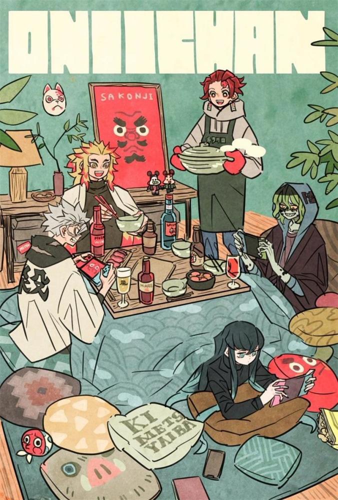 然而网上有才华的动漫迷实在太多了,近日有位鬼灭迷描绘了一组现代风的《鬼灭之刃》,脱下传统和服的众人,换上现代学院风后,真是个个都是潮流达人呀!正如下图鬼杀队·柱的聚餐,炭治郎都变成现代版小厨神了~