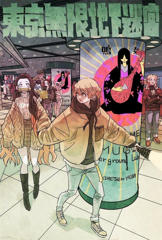祢豆子的感情线,稍微比哥哥炭治郎明朗一些,毕竟我妻真的对祢豆子很着迷呀!而在剧中两人没有什么亲密的互动,在现代风的画作中,我妻终于牵手成功祢豆子了!两人CP感十足嘛,但是祢豆子这装扮,有点像最近话题度超高的蝴蝶姐姐,你们觉得是不是呢?(背后那只猪猪在干什么!)