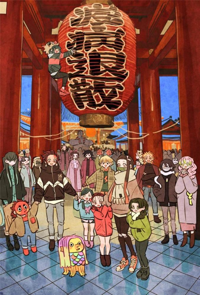 “蝶屋”一行人集体春游的既视感,真是太棒了!这幼女三人组在蝴蝶忍和香奈乎之间,竟然不像母女像姐妹,一看就觉得是姐姐带妹妹出游了~虽然“蝶屋”五人行很抢眼,但是背后的“群众演员”也无法忽视,很多小亮点等待你们发现呀!