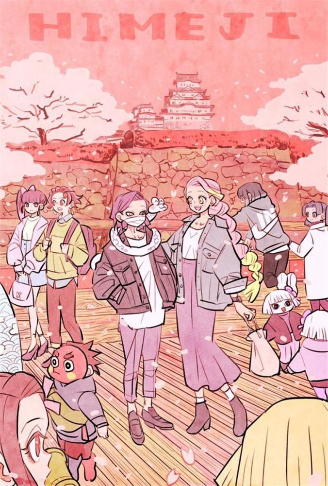 日本是个樱花国度,以樱花美景闻名世界,作为日漫近两年的代表作之一,《鬼灭之刃》剧中即使变成现代风,也不能错过与樱花美景同款哟~而且在樱花烂漫的浪漫时刻,出场的除了官配情侣小芭内和蜜璃,还有众多粉丝眼中的最佳CP炭治郎和香奈乎~(左右下角的我妻和祢豆子也不能忽视哟~)
