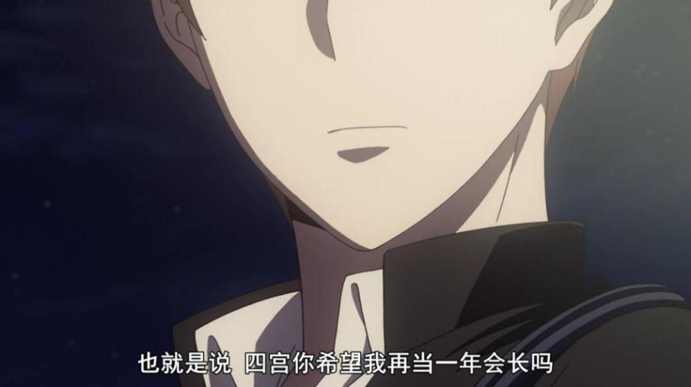 学生会的解散不是玩笑,本集的气氛已经达到了低谷,每个学生会成员都充满悲伤。当会长放回他那纯金的饰品时,会长脸上也浮现出似是无奈,似是解脱的表情。这时弹幕纷纷刷起了“完结撒花”。四宫也非常难受,她从此就没有了与会长交集的机会,观众看到这里也不禁可怜起了这个“傲娇”十足的女主。